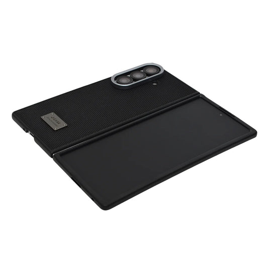 Samsung Galaxy Z Fold7 Tri Stripes Pro Racer Dotted Vegan Leather Back Cover - Black