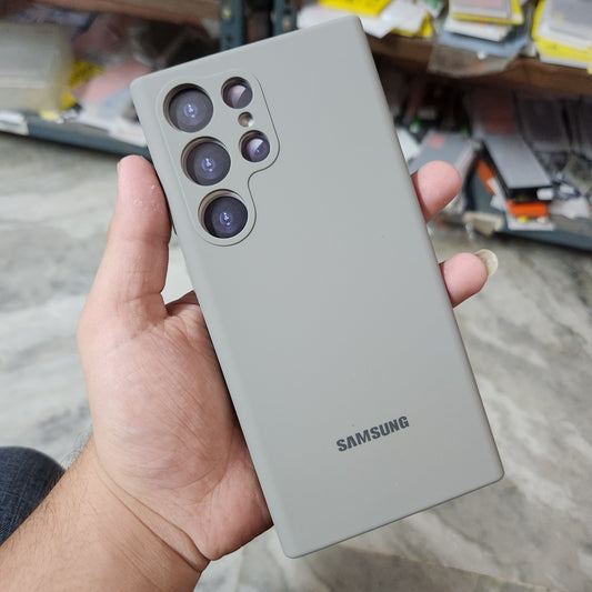 Samsung Galaxy S23 Ultra Original Flexible Matte Liquid Silicon Case With Logo - Titanium Grey