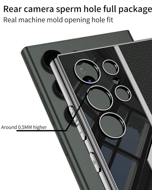 Samsung Galaxy S23 Ultra Leather Case, Super Slim Vegan Leather Case with Logo - Black