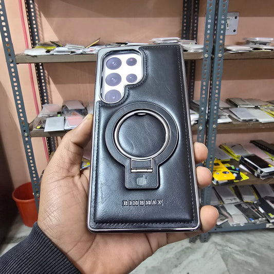 Samsung Galaxy S25 Ultra Leather Case, Premium PU Leather Case with Invisible Stand Magsafe Case - Black