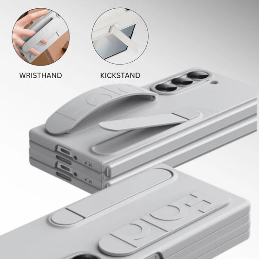 Samsung Galaxy Z Fold6 Silicon Case with Kickstand & Band (In-Built Front Glass) - Grey
