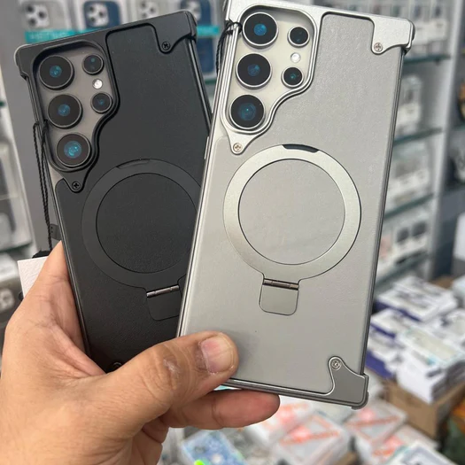 - Samsung Galaxy S24 Ultra Metal Frameless Ultra Thin Hard Shockproof Magsafe Case with Magnetic Invisible Stand